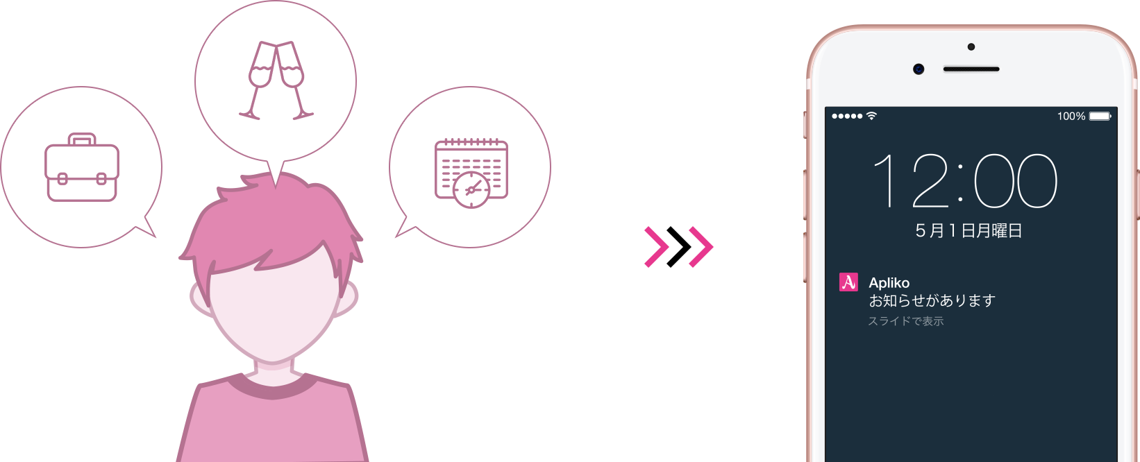 興味・関心で絞り込んだユーザーに対して管理画面からダイレクトにプッシュ通知が可能です。